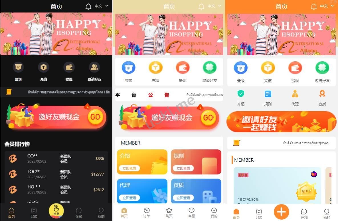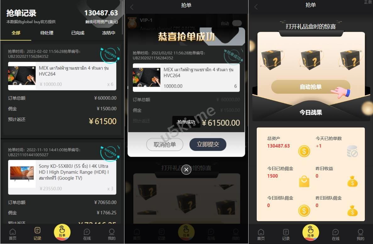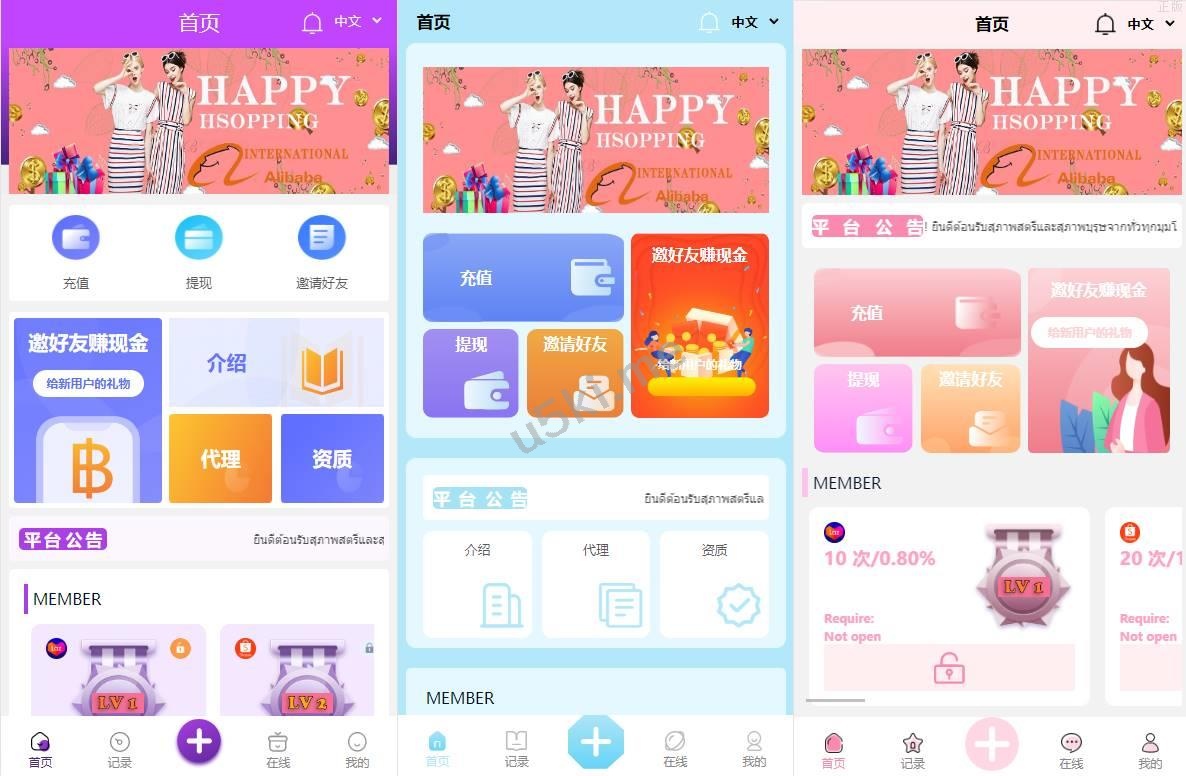 九套UI可切换海外抢单_刷单源代码/订单自动匹配系统/分组杀/连单控 更新5套ui 为紫色 粉色 青色,其他的为红色,蓝色,黄色,黑色,绿色,橙色, 前端9种语言后台任意设置开关,前端九套UI后台任意切换 功能支持分组、百分比、固定值、连单设置、充值彩金等众多功能 支持定制其它UI