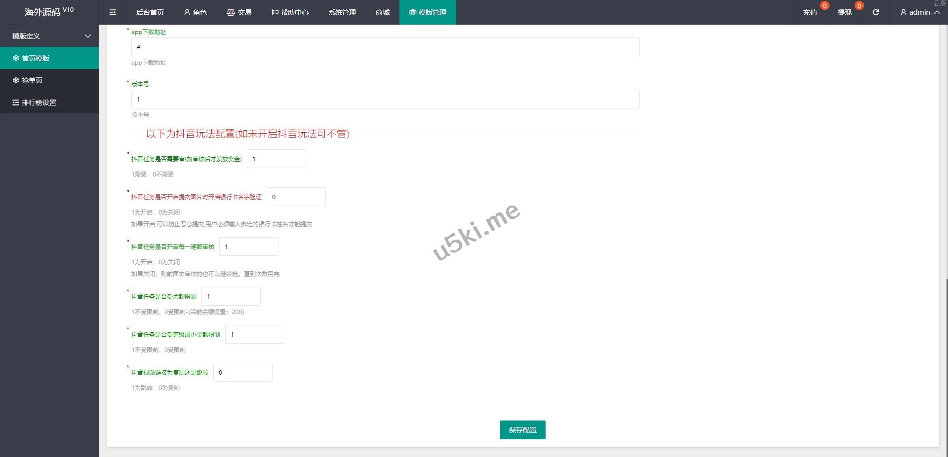 定制版抖音刷单系统/抖音抢单刷单源代码/手动自动抢单 此套刷单系统全新定制版本,支持正常刷单玩法,后台可设置用户手动刷单跟自动刷单 手动刷单后台可设置用户订单金额等,新增了抖音玩法前端提交后台审核,系统新增多个功能 前端单中文,支持二开其他语言