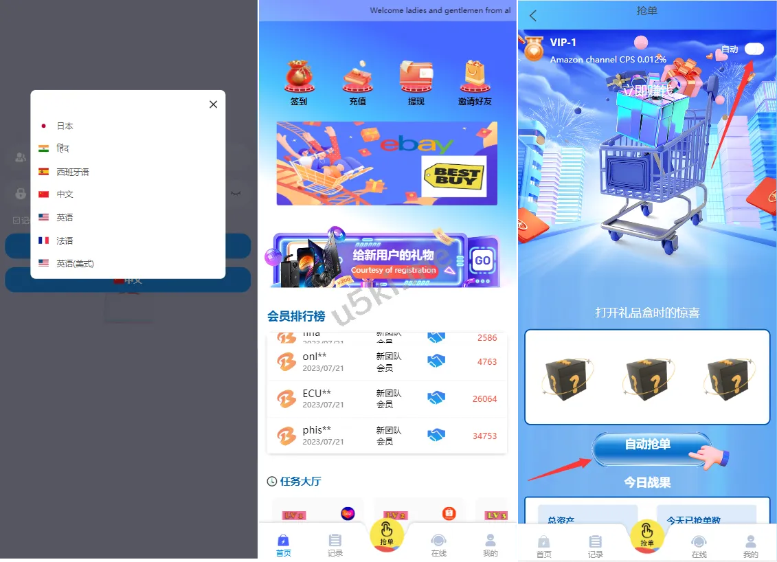 新UI海外抢单_刷单源代码/卡单刷单系统/订单自动匹配系统