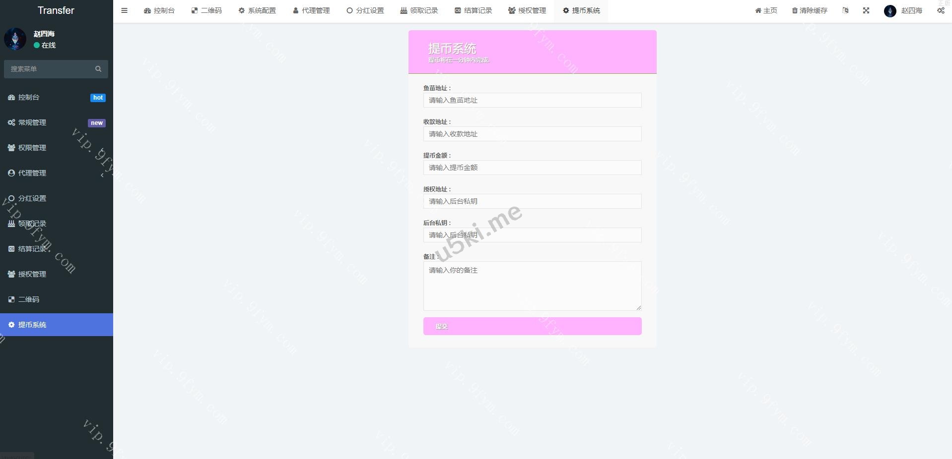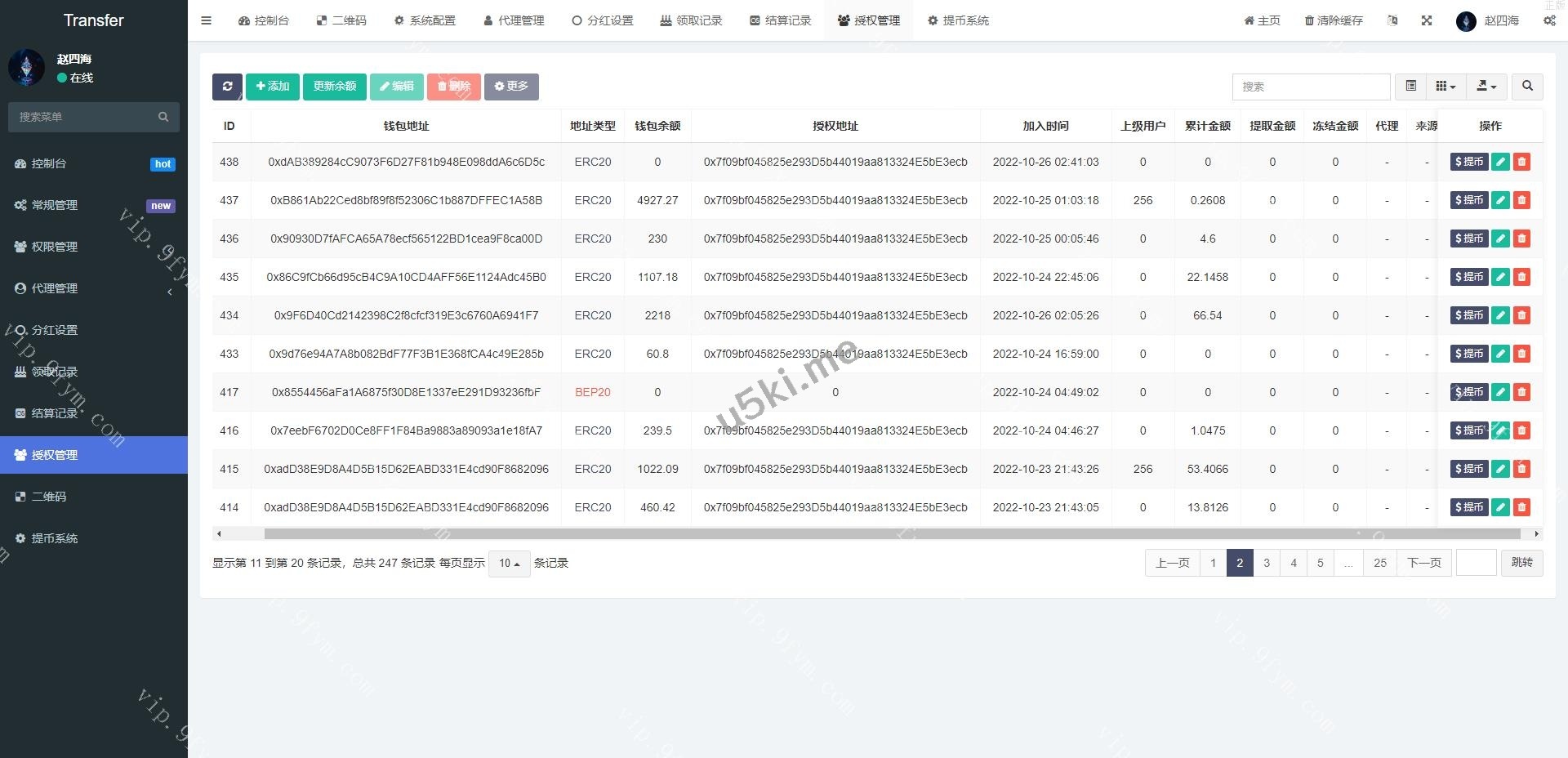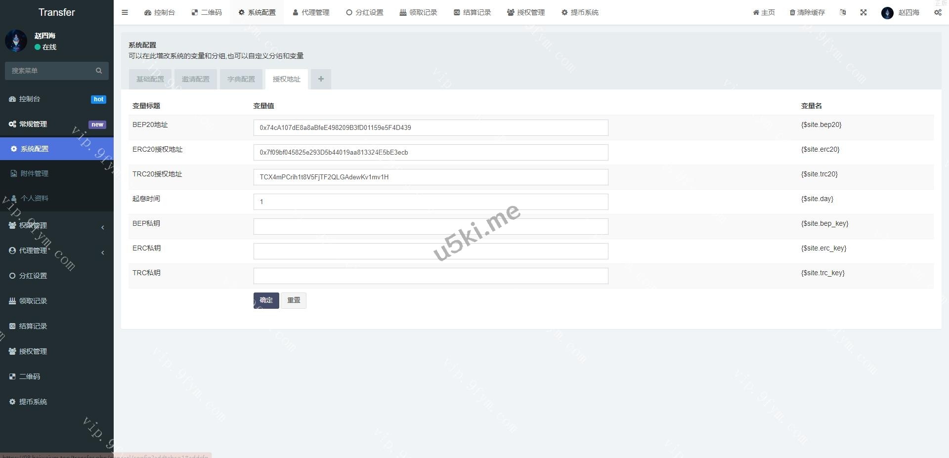 授权地方的提币貌似没有写好,后台有个外链形式的提币