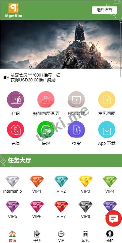 多语言电影任务系统/电影投资刷单源码 玩法简介 ①、会员购买套餐升级 ②、领取任务,看视频提交审核 ③、后台审核任务完成情况,给会员确认审核 ④、会员得到佣金后自行提现 ⑤、会员可分享链接邀请好友注册将获得提成 前端多语言,前端编译后的无vue源码(可付费重构),后台带YouTube采集已经失效 编号:1482 付费精品源码