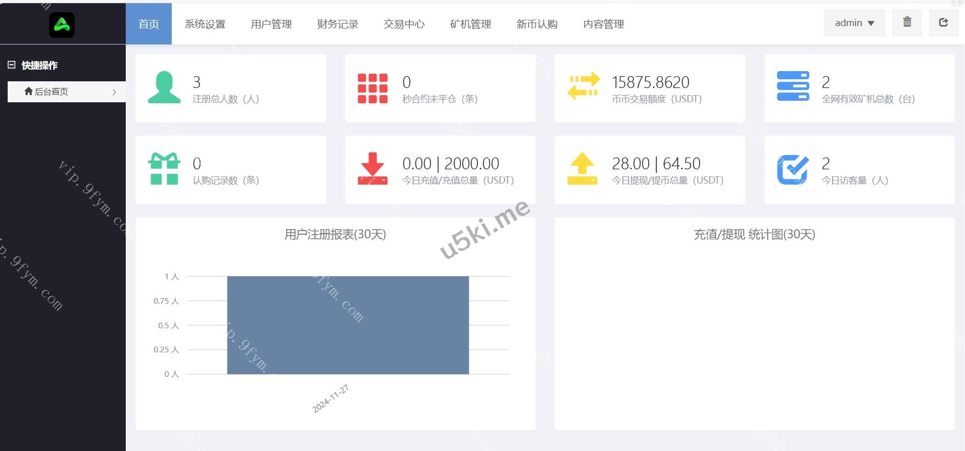 管理员后台新增今日充值和今日提现统计