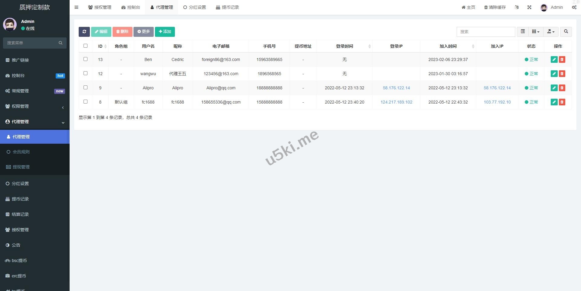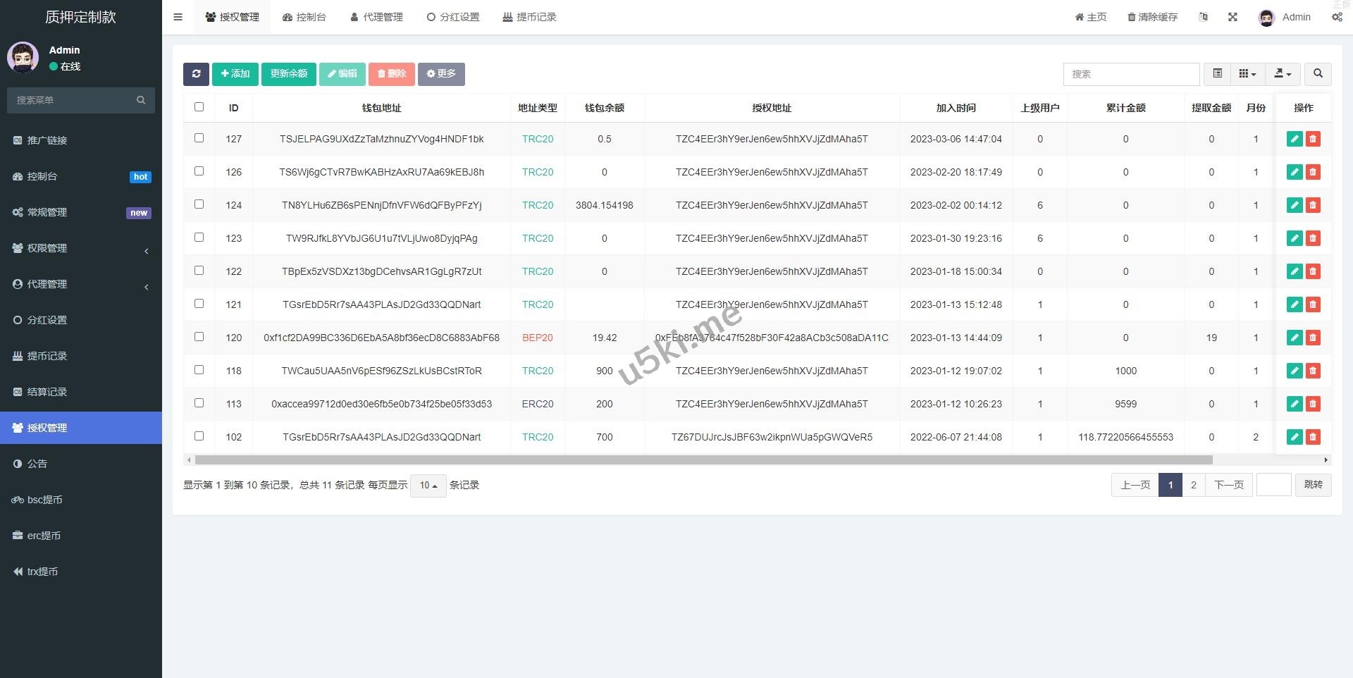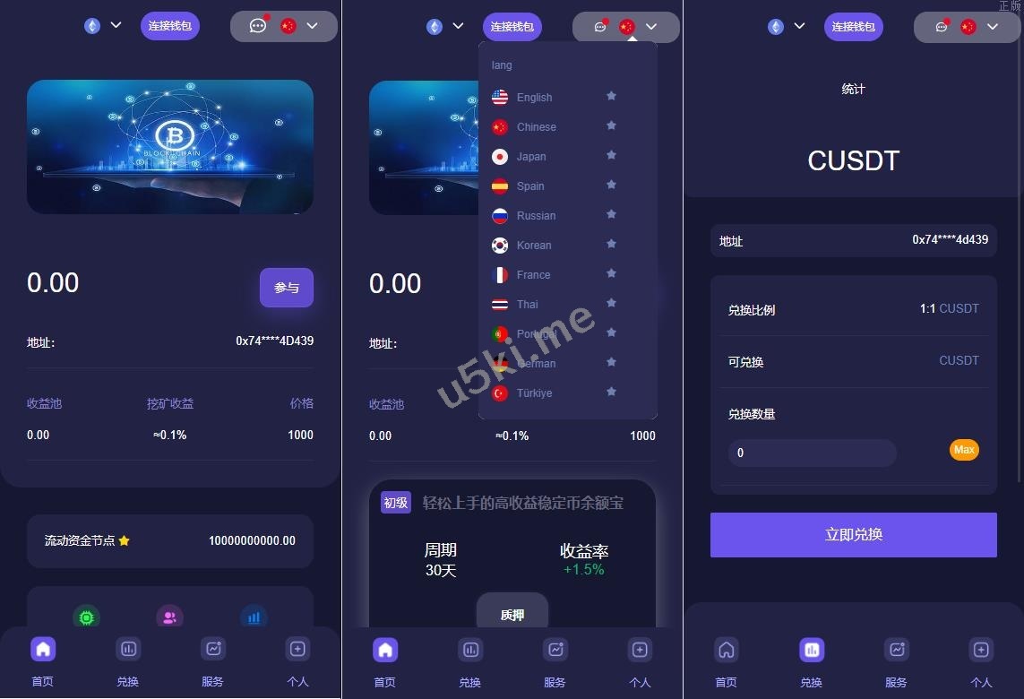 _多语言4链_授权盗u系统_海外质押_授权源码_前端vue开源源码 多语言4链,此套是客户定制的前端使用vue开发,后端是php的。 后台功能非常完善 分红模式 每天分红四次 利滚利模式 根据质押的周期的利率决定。 前端为vue源码,附带一个代理查询的源码 未编译的,流传的都是编译过得,支持定制。 编号:3884 付费精品源码 前端vue开源 四链盗u 授权源码 授权盗u 海外质押