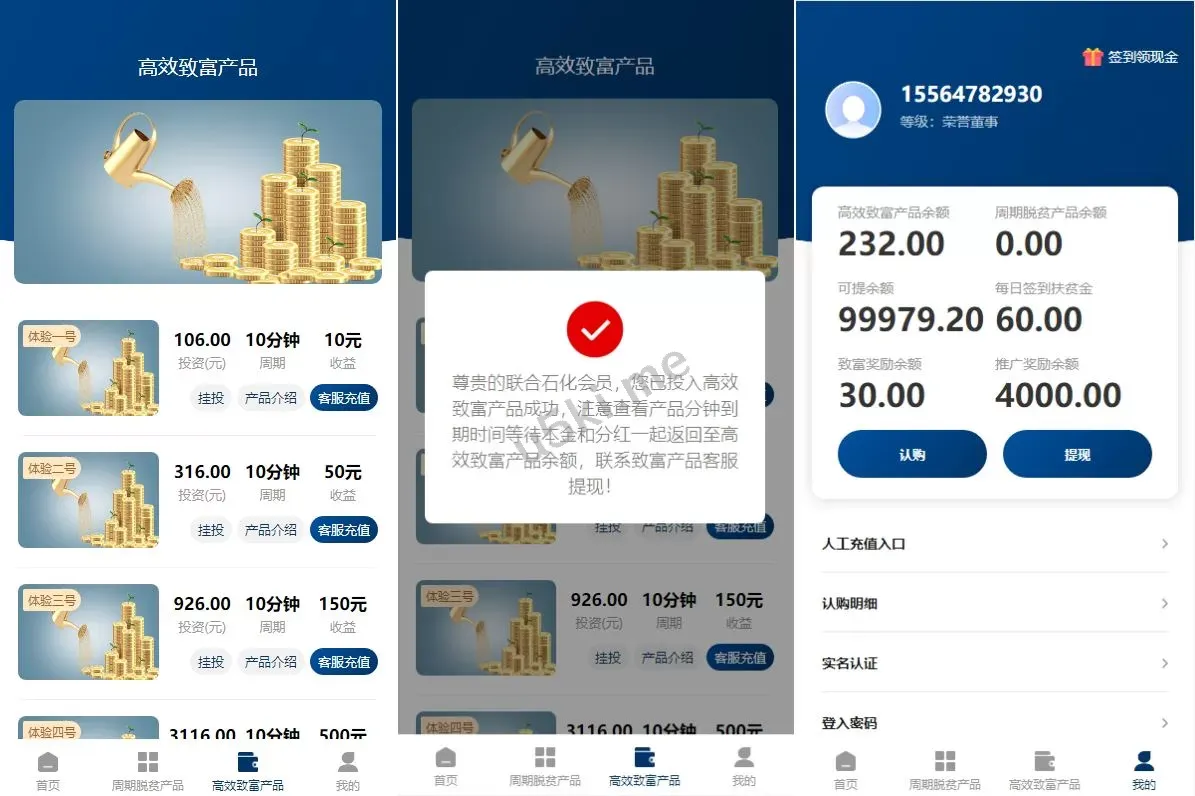 前端uinapp/联合石化投资理财系统/投资认购源码 🌟 主要功能亮点 🌟 ✅ 前端uinapp开发:简洁高效的前端,支持多平台使用✅ 联合石化投资项目:专为联合石化项目设计的认购理财系统✅ 后台thinkphp框架:稳定高效,支持大规模数据处理✅ 投资认购功能:支持用户参与联合石化项目的投资认购✅ 源码全开源:方便二次开发和个性化定制 📌 系统专为联合石化投资理财项目打造,前后端技术稳定,功能完善,适合二次开发和定制化需求! 项目投资理财