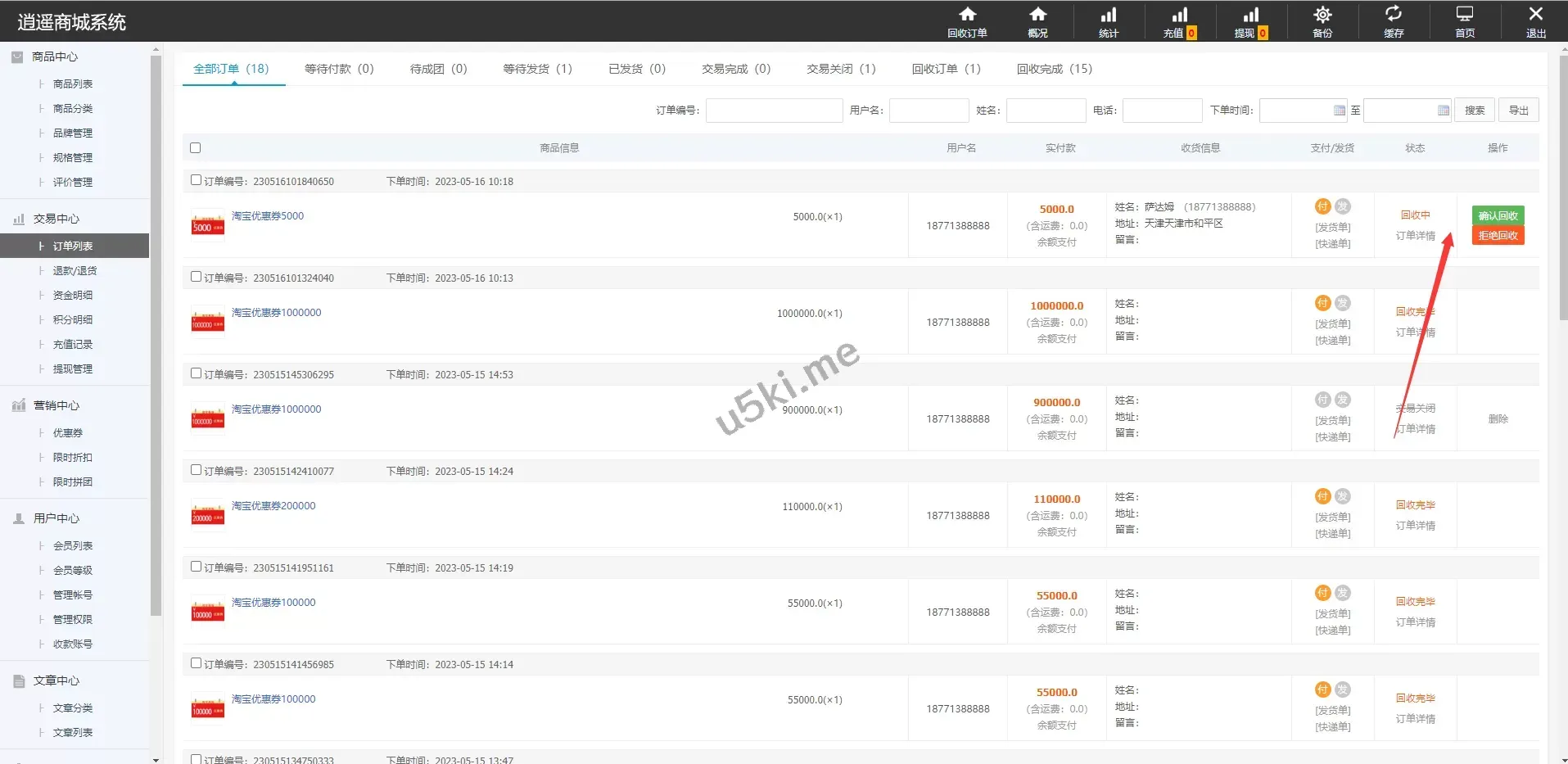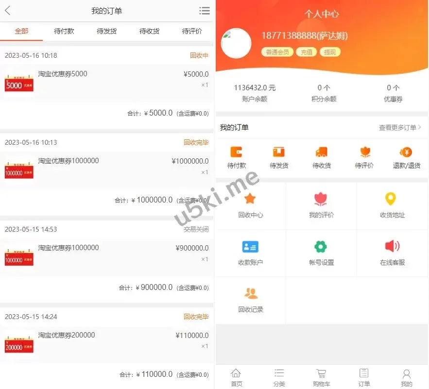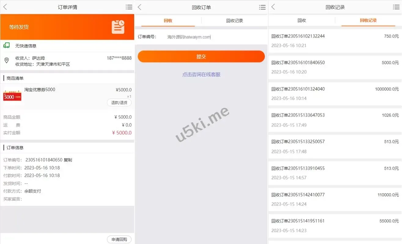 ✅ 订单回收功能:前台提交的订单可直接回收,便于用户管理与操作