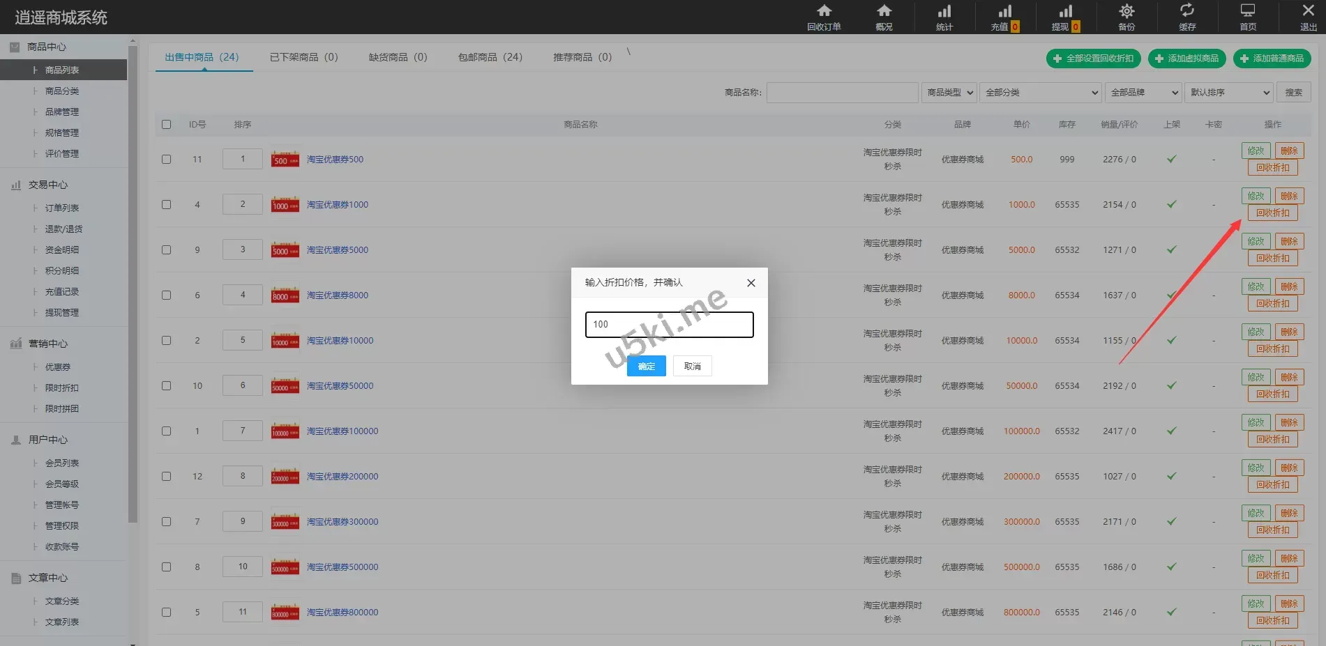 ✅ 商品回收折扣设置:每个商品可以单独设置回收折扣,灵活调整策略
