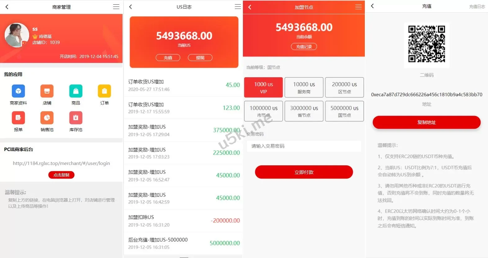 usdt支付的商城系统,购物获得返利,支持加盟代理推广,系统附带商家店铺电脑端