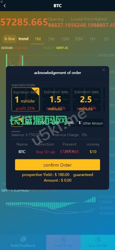 UI做的比较简单,k线、结算都正常,控制也是很OK的