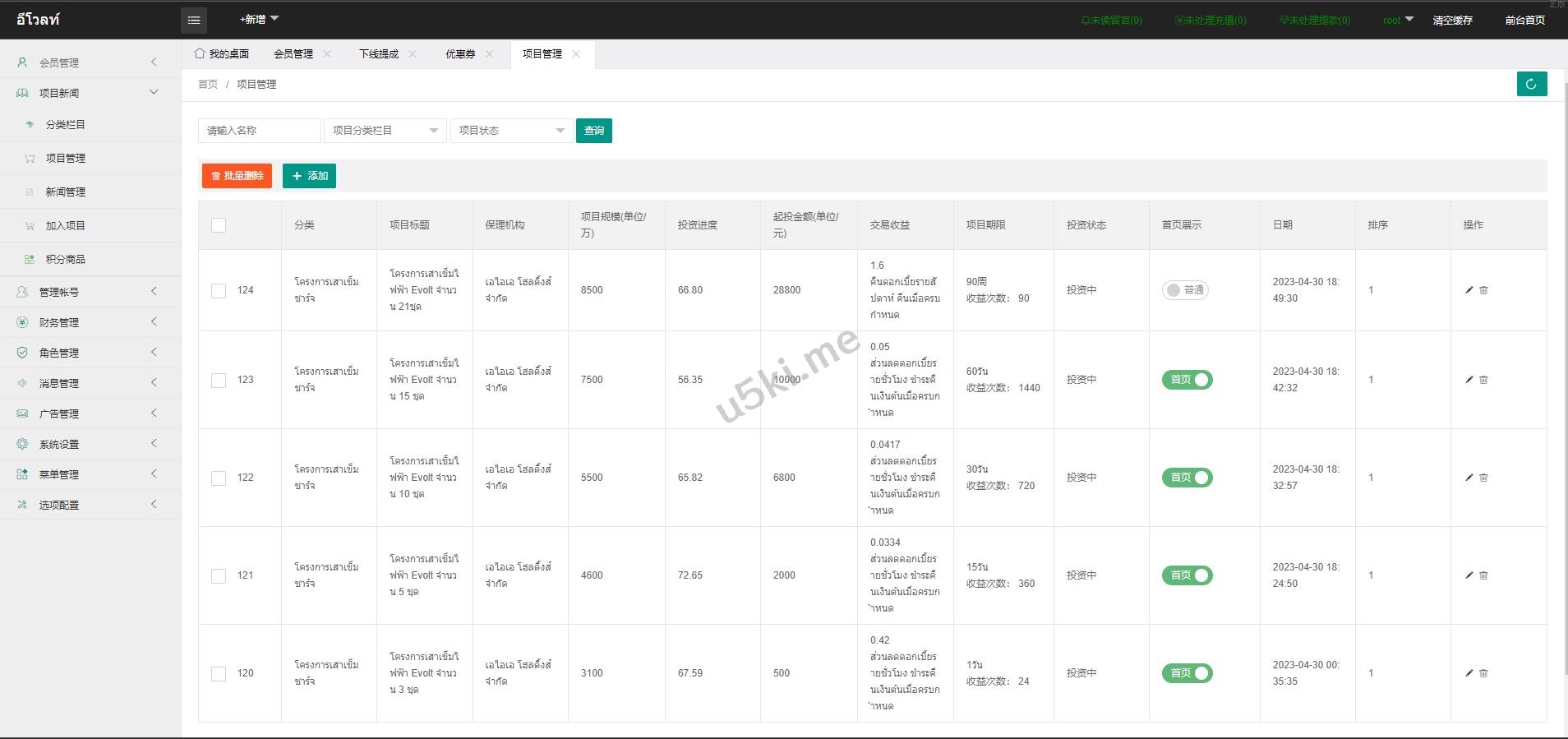 【海外投资理财】运营版泰语充电桩投资系统/泰国投资理财系统 系统前端单泰语,可二开其他语言, 适用于泰国市场 产品不限于充电桩投资,后台可更改其他产品 投资理财 泰国投资理财 泰语充电桩投资系统 海外投资理财