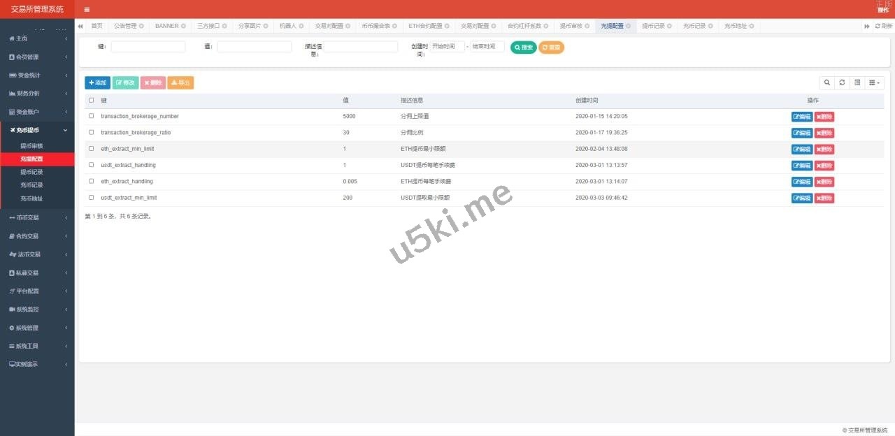 交易所后台主要功能: