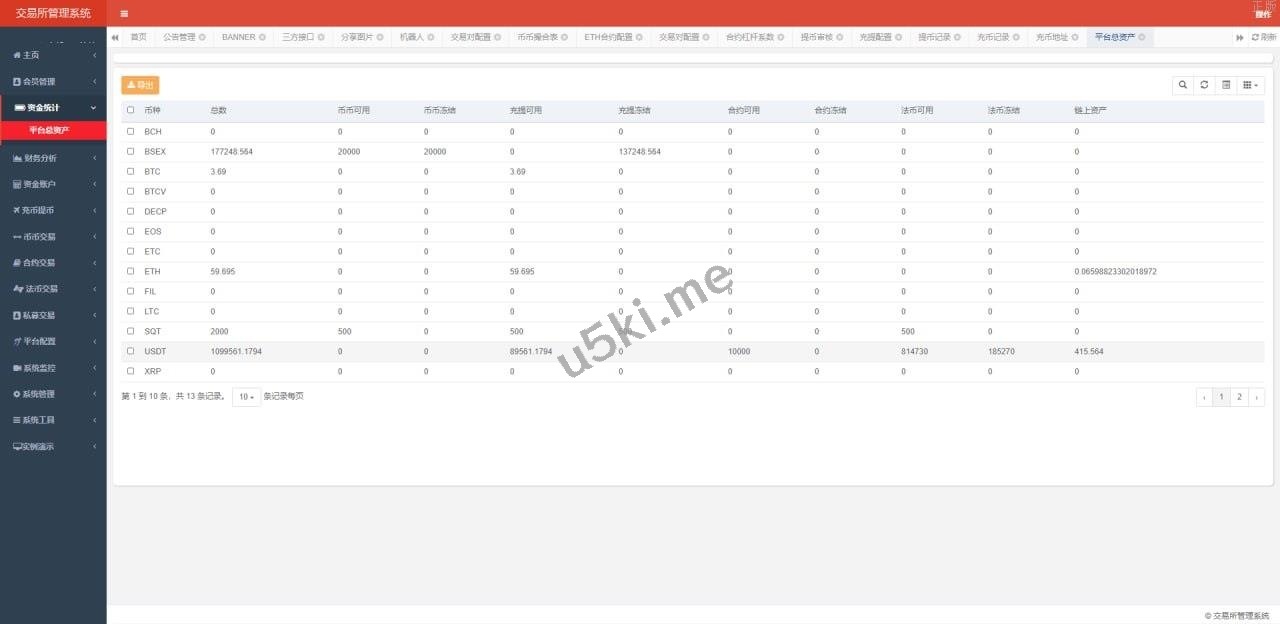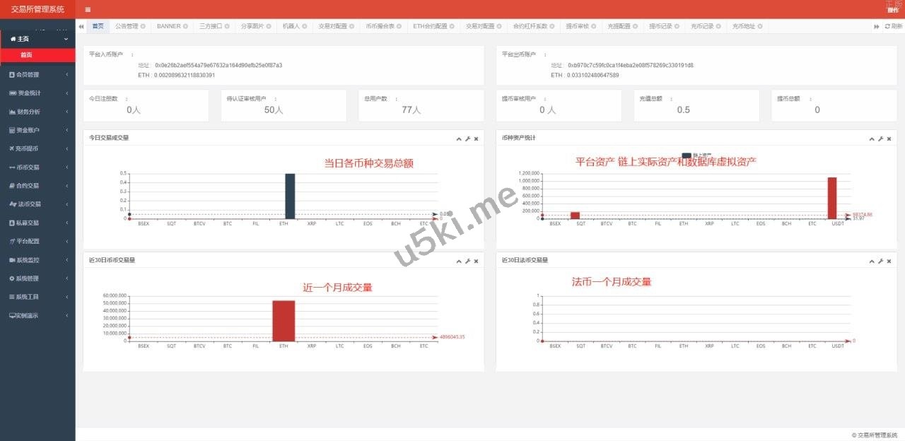 1.系统概况(币种统计、用户统计、交易统计、异常用户);