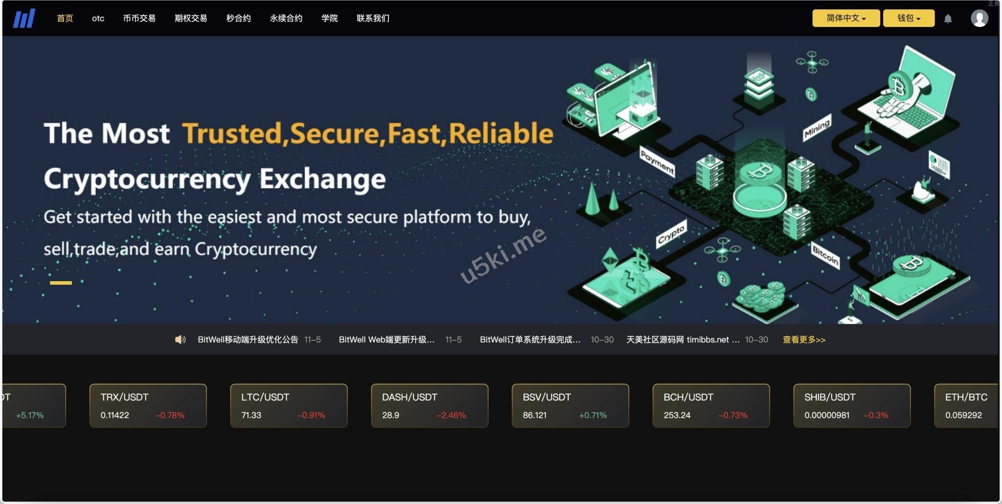 BieWell多语言交易所/15国语言交易所/OTC/永续合约/期权交易/币币交易/秒合约交易/申购/矿机/风控/代理渠道商 语言:15种语言 前端wap+pc都是编译后的,也是二开了很多的功能,具体的话看图片,UI这些倒是蛮不错的 遇到的问题:workerman启动有点问题,采集是正常的,wss不能推送