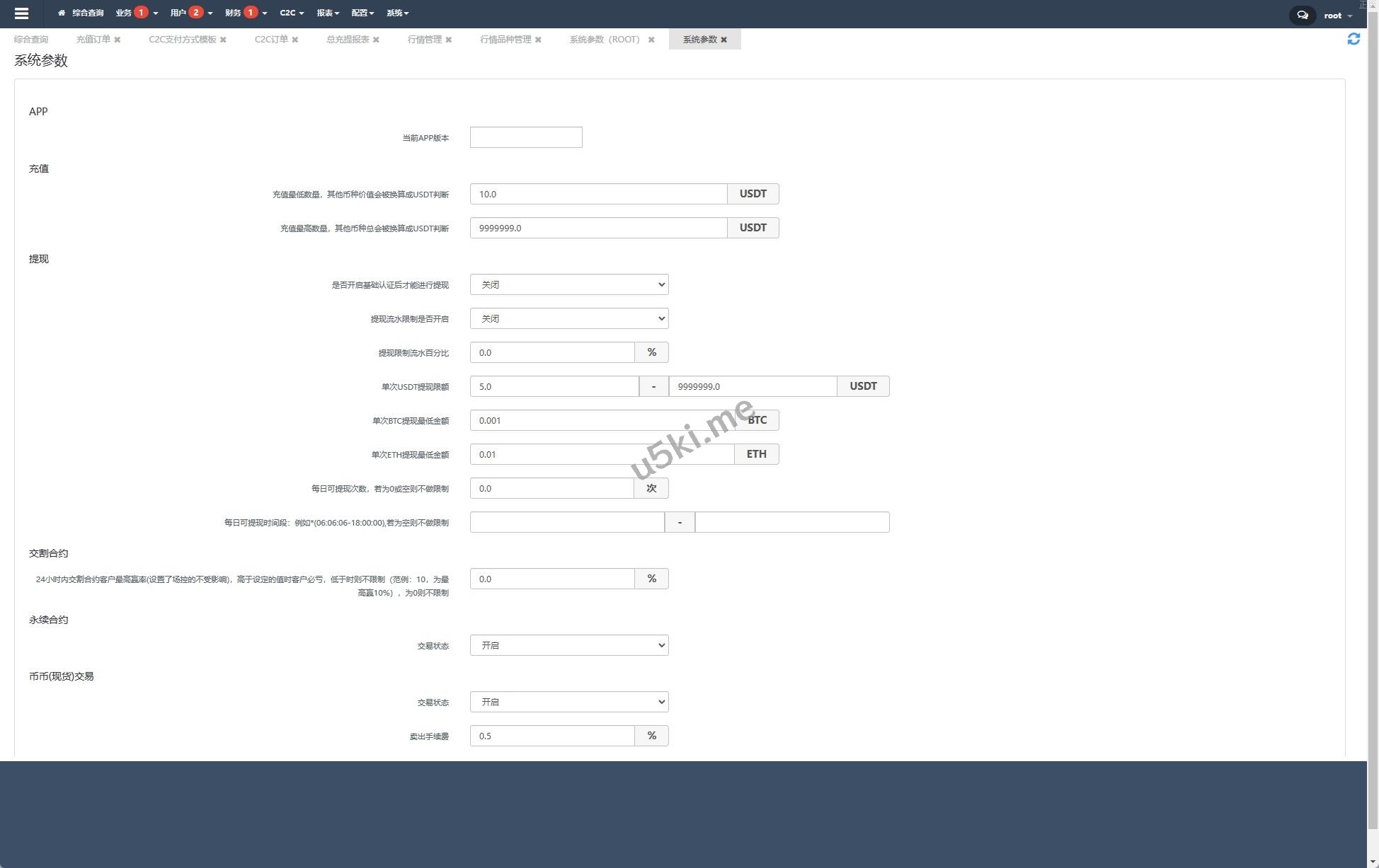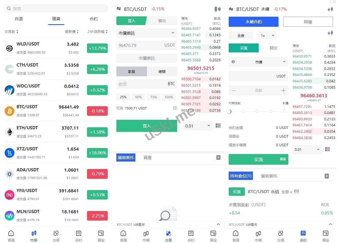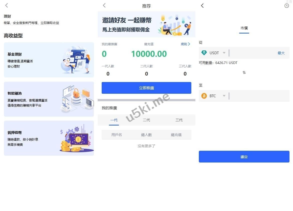 系统功能:币币交易、永续合约、期权交易、闪兑、理财、借币、邀请等功能