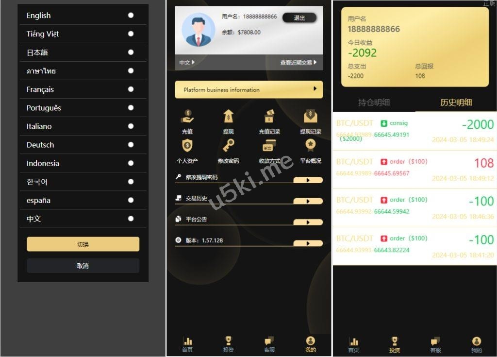 4语言微盘仿交易所源码/K线正常/秒合约/质押