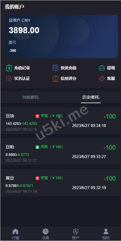 前端功能简洁,K线UI优美,用户信用分后台可更改