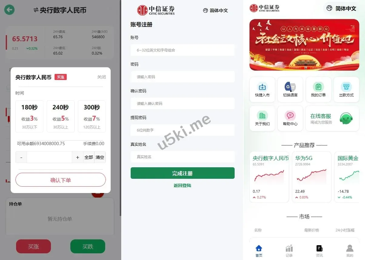 【海外uniapp多语言微盘源码】中信证券交易所微交易30s秒合约贵金属期货外汇微盘源码 国泰君安二次开发的 后端是fastadmin框架开发,前端uniapp 系统前端是全新开发的,该有的功能都有前端K线正常运行结算