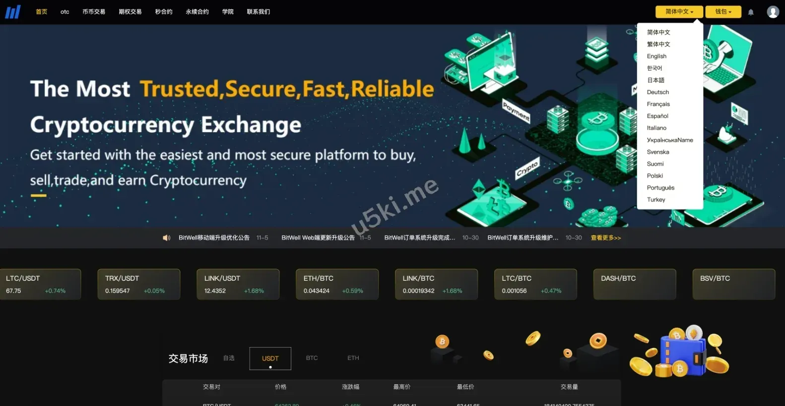 全开源BitWell多语言交易所源码/OTC+永续合约+期权交易+币币交易+秒合约交易+申购+风控+代理渠道商/前端uniapp+后端php