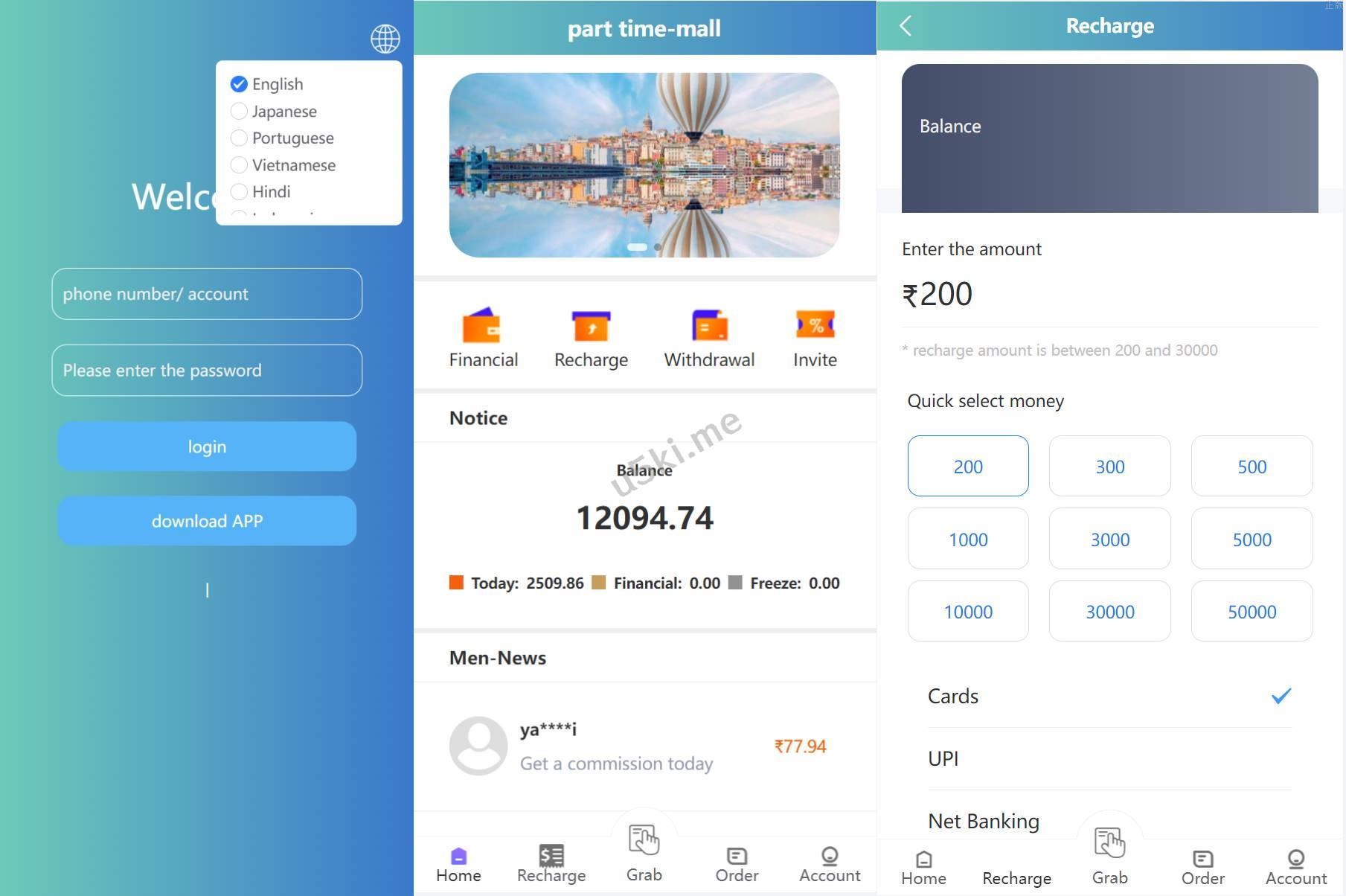 海外VUE版抢单源码刷单系统源码/多语言订单匹配系统/海外抢单刷单源代码 VUE版嗨淘抢单系统/多语言订单匹配系统/海外抢单刷单源代码 前端vue源码,嗨淘六国语言(巴西、日本、印度、印尼、英文、越南)抢单源码,后台为中文。