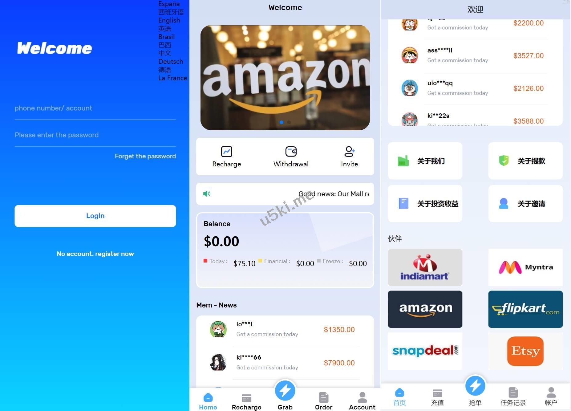 国外盘多语言亚马逊自动抓取订单系统源码/返佣系统/叠加组/电商抢单_刷单源代码 多语言亚马逊自动抓取订单系统/返佣系统/叠加组/电商抢单_刷单源代码 源码是开源,无加密,无后门(支持任何二开功能) 优化手机端页面,解决手机端加载慢的问题 邀请功能-可自建团队,获得更多佣金,升级会员等 自动抓取亚马逊订单,可以停止抢订单-抓取订单做任务