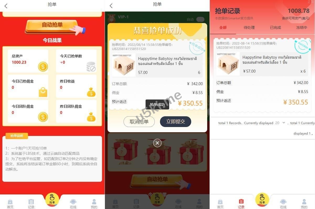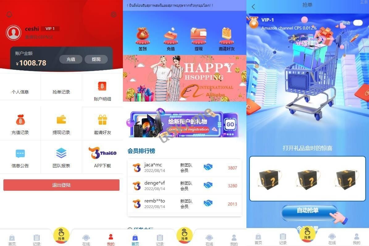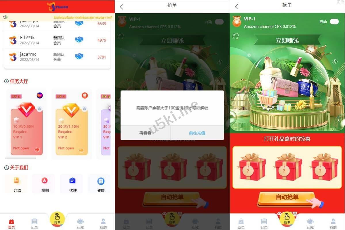 多语言四套UI海外抢单_刷单源代码/订单自动匹配系统/分组杀/连单控 多语言四套UI海外抢单_刷单源代码/订单自动匹配系统/分组杀/连单控 此套系统可以说是抢单的天花板了,该有的功能应有尽有 前端9种语言后台任意设置开关,前端四套UI后台任意切换 功能支持分组、百分比、固定值、连单设置、充值彩金等众多功能 源码不便宜,觉得贵的勿联系,支持定制其它UI